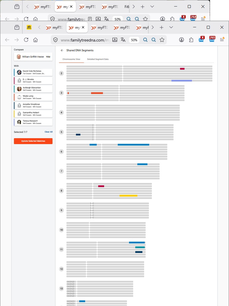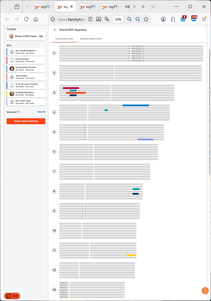 List of pedigrees Bland of Northern Neck Va. Nicholas of Roundway Hester of Fleming Co Ky Thruston author's autosomal DNA test results uploaded at gedmatch.com kit No. T848545 or test at familytreedna.com to show up automatically on my Match list> |