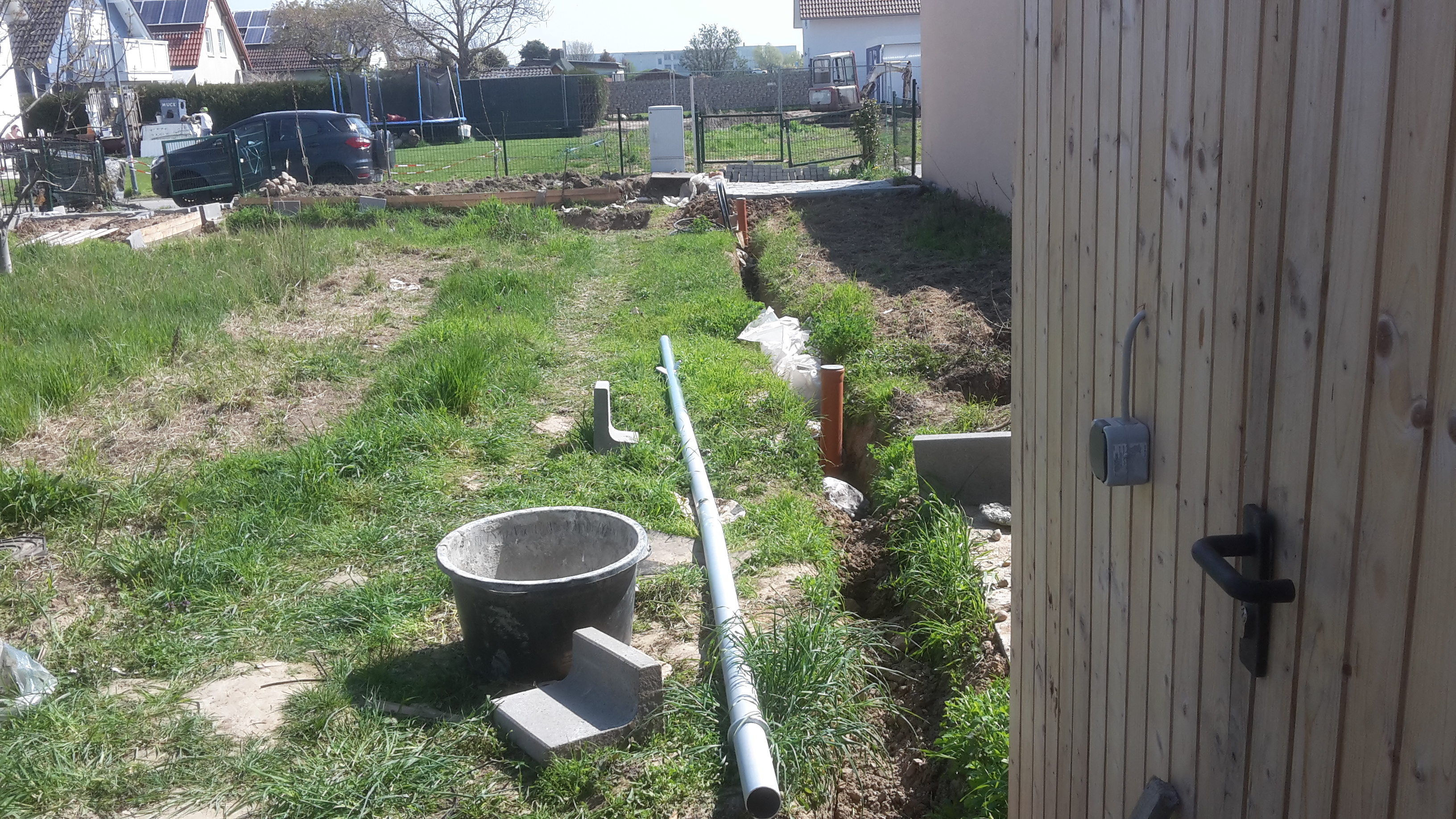 Ratsam bei der Aufschüttung wäre es auch noch gewesen, noch 3 oder 4 Rohre um den Keller zu legen.