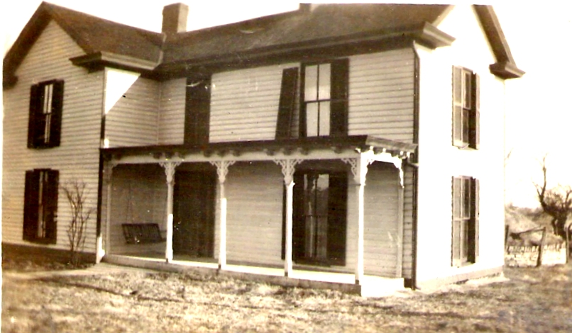 By uncanny coincidence the Bland house looks almost identical to the the birth house of President Harry Truman, for about 1840 the grandparents of Thomas Eugene Bland went West with his parents'neighbors, Harry Trumans grandparents, to settle in Missouri. But they died shortly afterwards and their son, Thomas Pope Bland, was returned to Bagdad to be brought up by the great grandparents. Both houses were built about the same time by men who never met, but whose grandparents had been long time good neighbors and migrated together from Kentucky to Missouri. The coincidence is to be explained in part by the prevailing architectural style of the the 1890's. But the same layout of a porch swung around the left front corner is really surprising.f Thomas Pope Bland and Levicy Jane Harris (Ha4), whose families settled near Bagdad